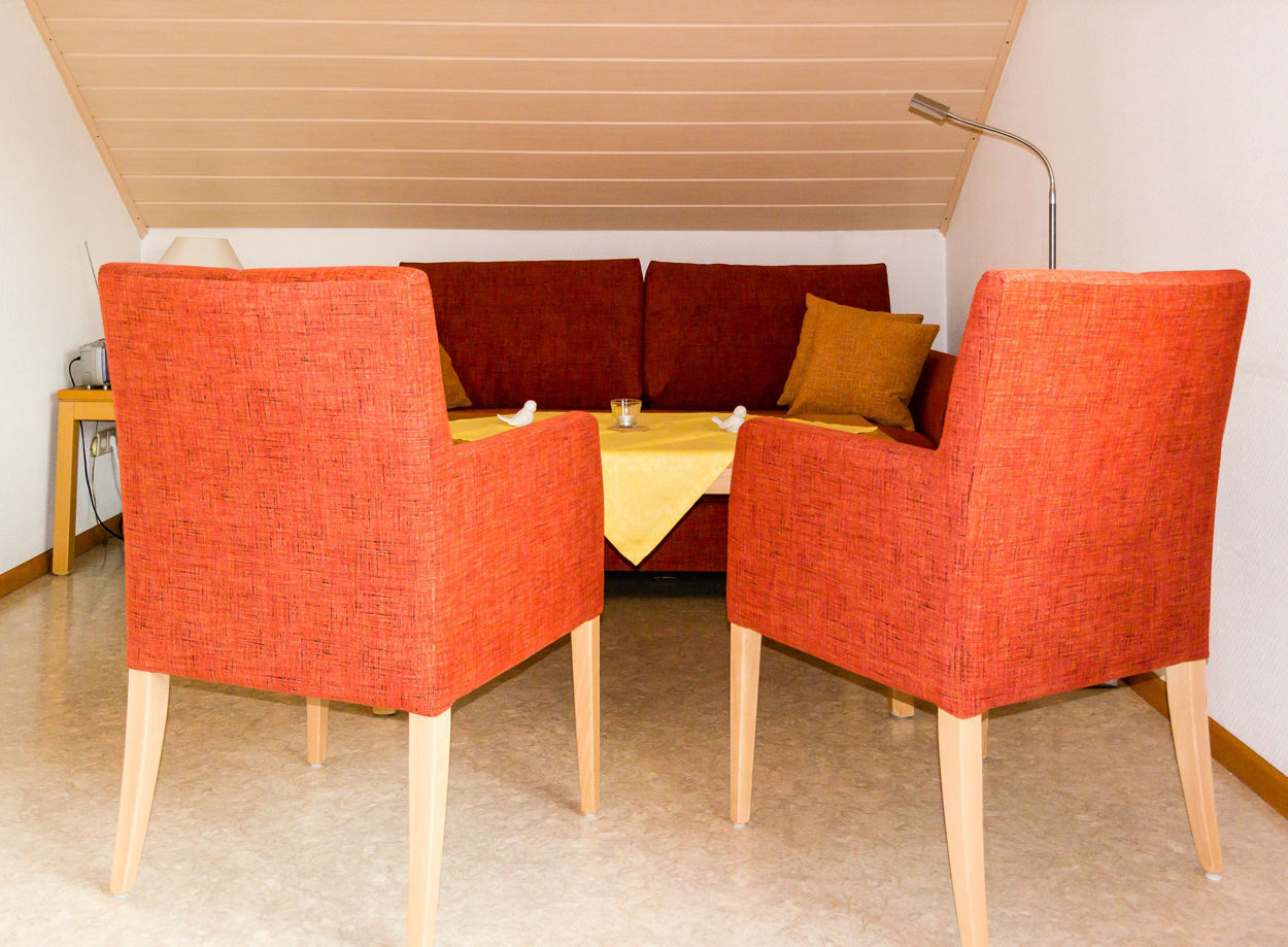 - Wohn-/ Essbereich mit Tischgruppe und Couchgarnitur
